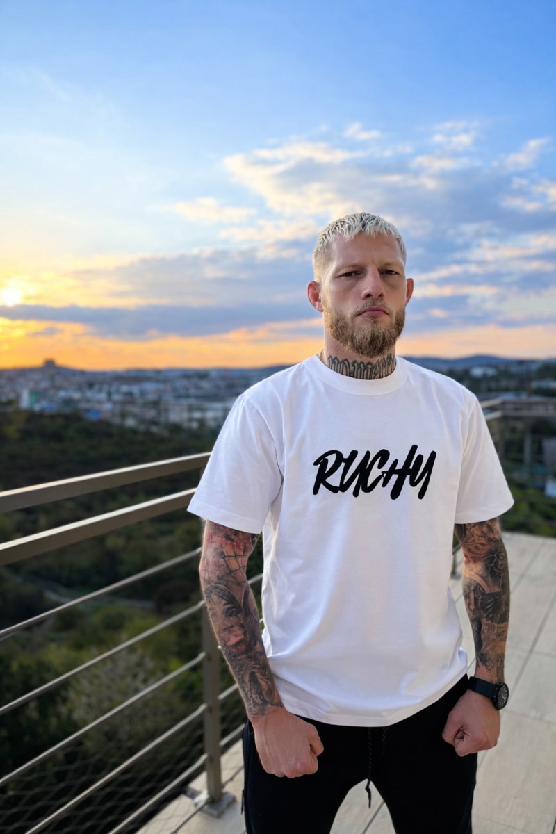 Ruchy Roušal, první malej Merch. Triko oversize střihu, z pevného materiálu.