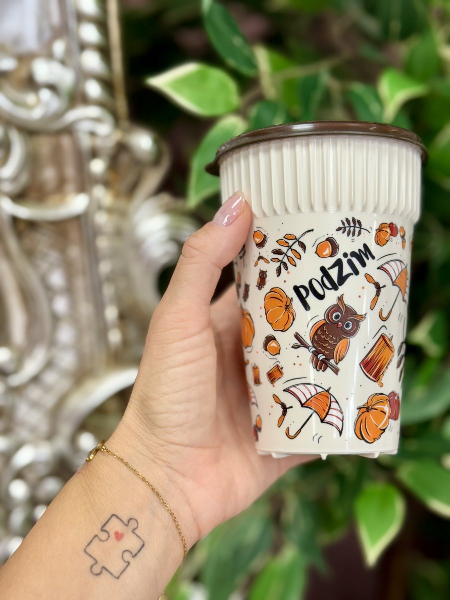 Krásný hrníček na kafíčko nebo na čaj. Hrníčky máme podle ročního období v různých barvách s různými ilustracemi. Pro další fotky sjeďte níže. Jde o vlastní ilustrovaný, originální potisk. Hrníček je u konce hrdla vroubkovaný, aby se zabránilo popálení prstů. Nemýt v myčce, ale v ruce.